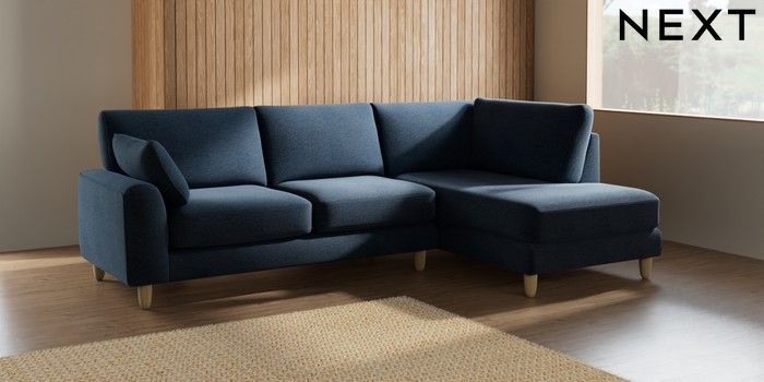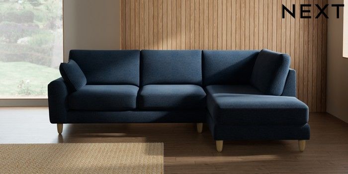 7.2.10 Campbell Medium Corner Chaise - Right Hand Ripple Chenille Dark Blue High Leg - Light | Made Click here to use our website with more accessibility support, for example screen readers