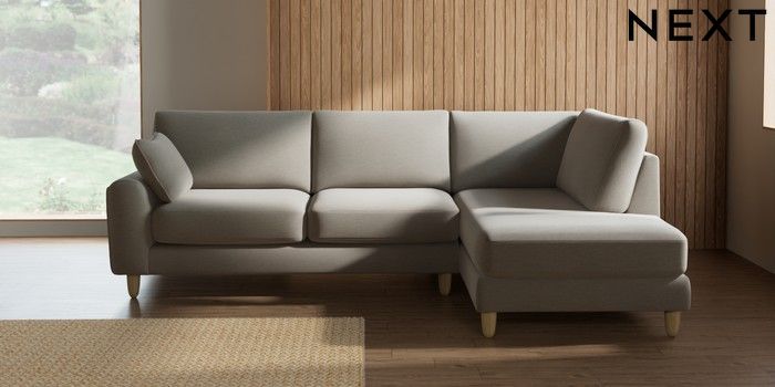 7.2.10 Campbell Medium Corner Chaise - Right Hand Ripple Chenille Light Natural High Leg - Light | Made Click here to use our website with more accessibility support, for example screen readers