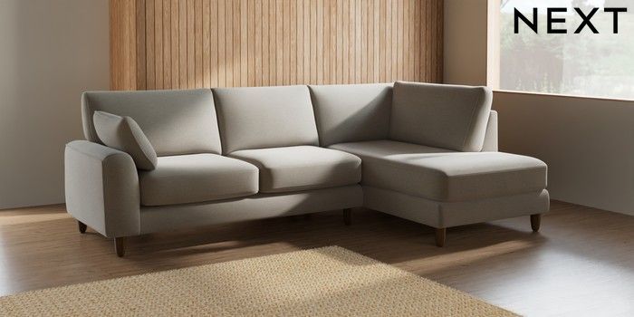 7.2.10 Campbell Medium Corner Chaise - Right Hand Ripple Chenille Light Natural High Leg - Mid | Made Click here to use our website with more accessibility support, for example screen readers