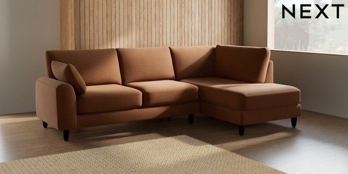 7.2.10 Campbell Medium Corner Chaise - Right Hand Ripple Chenille Mid Rust Brown High Leg - Dark | Made Click here to use our website with more accessibility support, for example screen readers