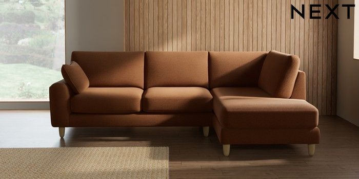 7.2.10 Campbell Medium Corner Chaise - Right Hand Ripple Chenille Mid Rust Brown High Leg - Light | Made Click here to use our website with more accessibility support, for example screen readers