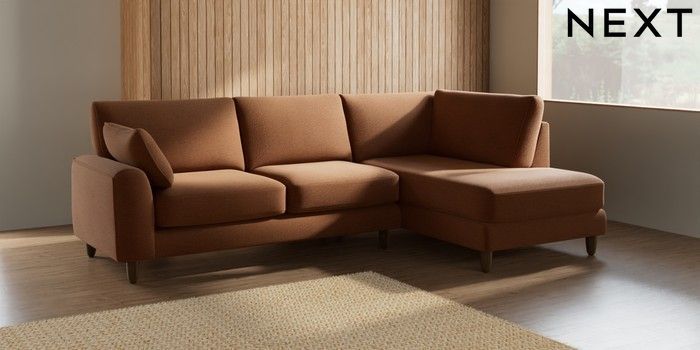 7.2.10 Campbell Medium Corner Chaise - Right Hand Ripple Chenille Mid Rust Brown High Leg - Mid | Made Click here to use our website with more accessibility support, for example screen readers