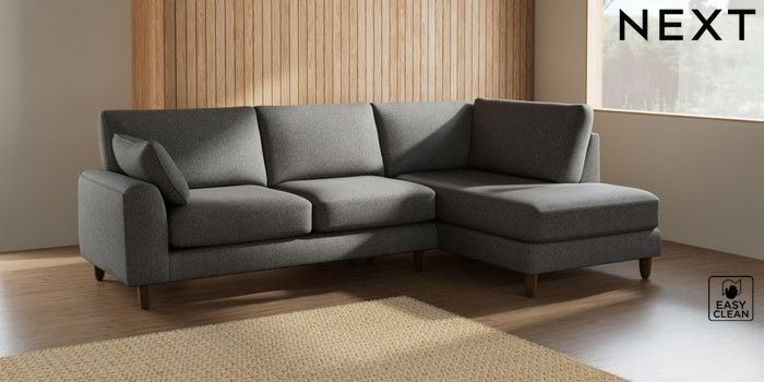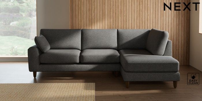 7.2.10 Campbell Medium Corner Chaise - Right Hand Tweedy Blend Easy Clean Dark Grey High Leg - Mid | Made Click here to use our website with more accessibility support, for example screen readers