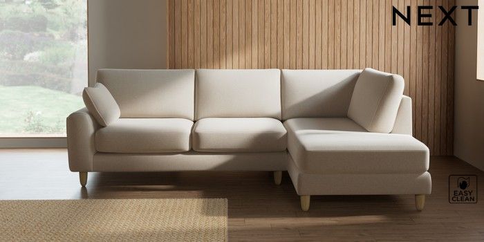 7.2.10 Campbell Medium Corner Chaise - Right Hand Tweedy Blend Easy Clean Oyster High Leg - Light | Made Click here to use our website with more accessibility support, for example screen readers