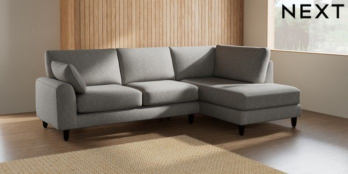 7.2.10 Campbell Medium Corner Chaise - Right Hand Tweedy Chenille Mid Grey High Leg - Dark | Made Click here to use our website with more accessibility support, for example screen readers