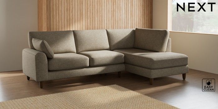 7.2.10 Campbell Medium Corner Chaise - Right Hand Woven Chenille Easy Clean Mid Natural High Leg - Mid | Made Click here to use our website with more accessibility support, for example screen readers