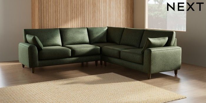 7.2.10 Campbell Medium Corner Sofa - Universal Boucle Chenille Dark Moss Green High Leg - Mid | Made Click here to use our website with more accessibility support, for example screen readers