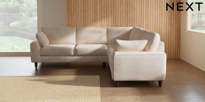 7.2.10 Campbell Medium Corner Sofa - Universal Boucle Chenille Oyster High Leg - Mid | Made Click here to use our website with more accessibility support, for example screen readers