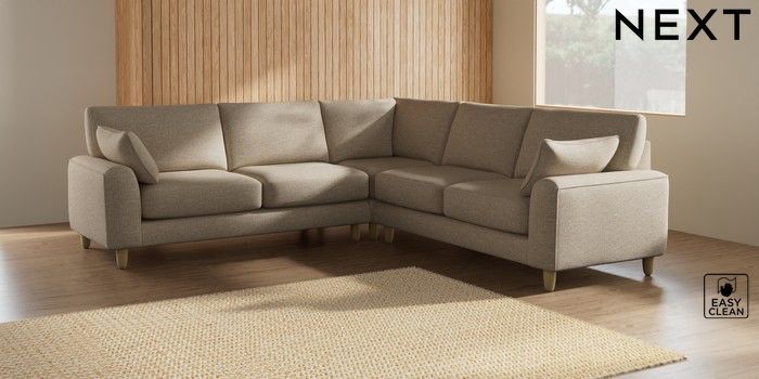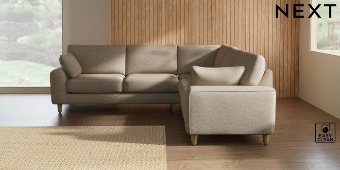 7.2.10 Campbell Medium Corner Sofa - Universal Boucle Weave Easy Clean Dark Natural High Leg - Light | Made Click here to use our website with more accessibility support, for example screen readers
