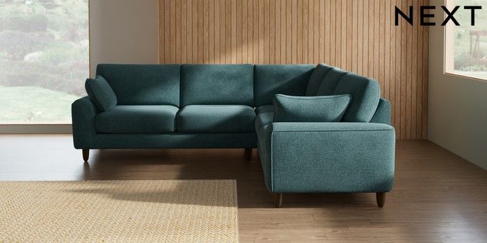 7.2.10 Campbell Medium Corner Sofa - Universal Chunky Chenille Mid Teal Green High Leg - Mid | Made Click here to use our website with more accessibility support, for example screen readers