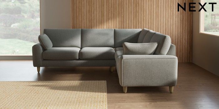 7.2.10 Campbell Medium Corner Sofa - Universal Chunky Texture Dove High Leg - Light | Made Click here to use our website with more accessibility support, for example screen readers
