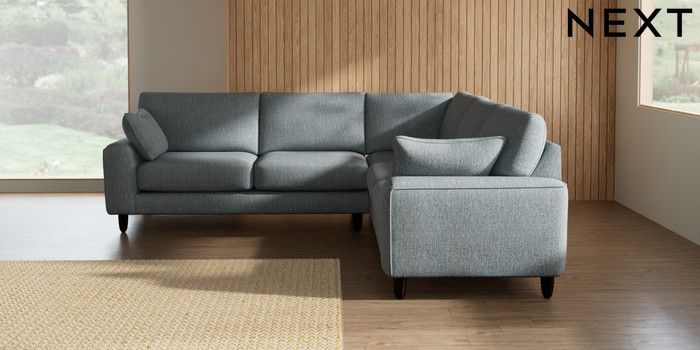 7.2.10 Campbell Medium Corner Sofa - Universal Chunky Weave Mid Blue High Leg - Dark | Made Click here to use our website with more accessibility support, for example screen readers