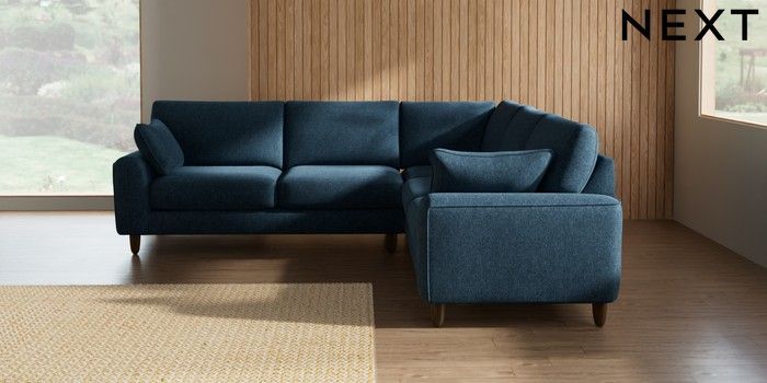 7.2.10 Campbell Medium Corner Sofa - Universal Cotswold Chenille Dark Blue High Leg - Mid | Made Click here to use our website with more accessibility support, for example screen readers