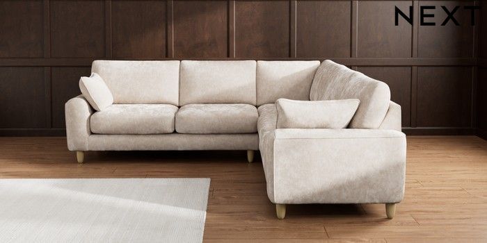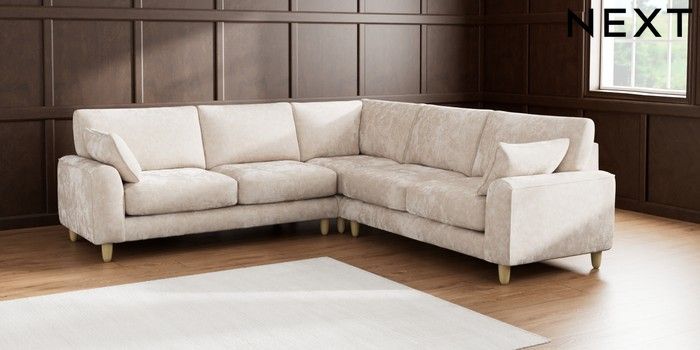 7.2.10 Campbell Medium Corner Sofa - Universal Distressed Velour Mid Natural High Leg - Light | Made Click here to use our website with more accessibility support, for example screen readers