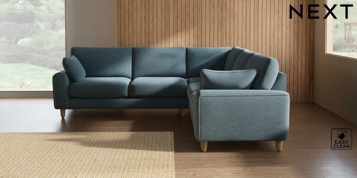 7.2.10 Campbell Medium Corner Sofa - Universal Fine Chenille Easy Clean Mid Blue High Leg - Light | Made Click here to use our website with more accessibility support, for example screen readers