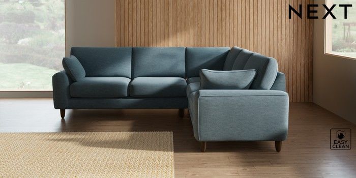 7.2.10 Campbell Medium Corner Sofa - Universal Fine Chenille Easy Clean Mid Blue High Leg - Mid | Made Click here to use our website with more accessibility support, for example screen readers