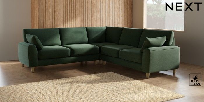 7.2.10 Campbell Medium Corner Sofa - Universal Fine Chenille Easy Clean Mid Khaki Green High Leg - Light | Made Click here to use our website with more accessibility support, for example screen readers