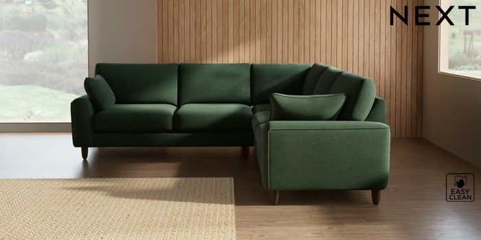 7.2.10 Campbell Medium Corner Sofa - Universal Fine Chenille Easy Clean Mid Khaki Green High Leg - Mid | Made Click here to use our website with more accessibility support, for example screen readers