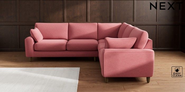 7.2.10 Campbell Medium Corner Sofa - Universal Fine Chenille Easy Clean Mid Pink High Leg - Mid | Made Click here to use our website with more accessibility support, for example screen readers