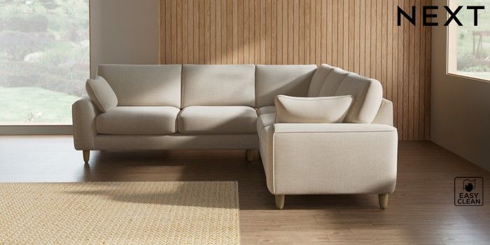 7.2.10 Campbell Medium Corner Sofa - Universal Fine Chenille Easy Clean Oyster High Leg - Light | Made Click here to use our website with more accessibility support, for example screen readers