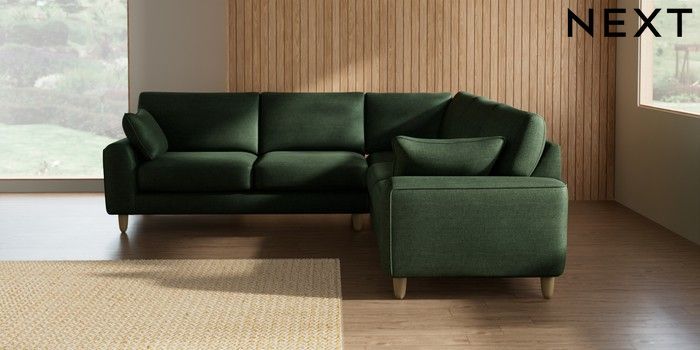 7.2.10 Campbell Medium Corner Sofa - Universal Luxe Chenille Dark Green High Leg - Light | Made Click here to use our website with more accessibility support, for example screen readers