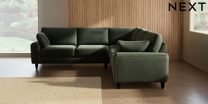 7.2.10 Campbell Medium Corner Sofa - Universal Luxe Chenille Mid Green High Leg - Dark | Made Click here to use our website with more accessibility support, for example screen readers