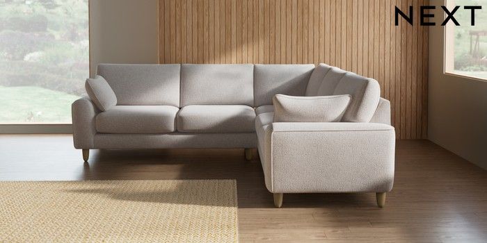 7.2.10 Campbell Medium Corner Sofa - Universal Multi Weave Oyster High Leg - Light | Made Click here to use our website with more accessibility support, for example screen readers