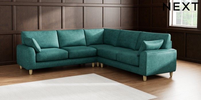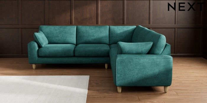 7.2.10 Campbell Medium Corner Sofa - Universal Plush Chenille Dark Teal Green High Leg - Light | Made Click here to use our website with more accessibility support, for example screen readers