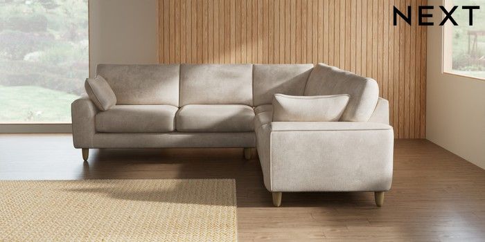 7.2.10 Campbell Medium Corner Sofa - Universal Plush Chenille Oyster High Leg - Light | Made Click here to use our website with more accessibility support, for example screen readers