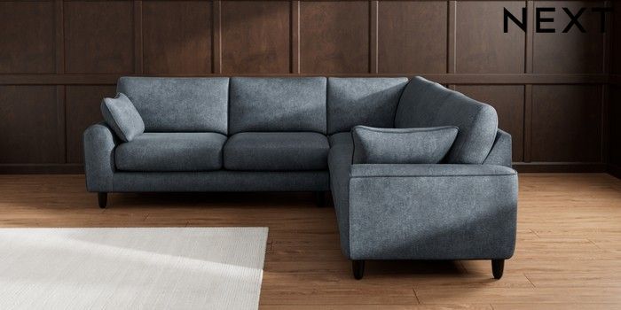 7.2.10 Campbell Medium Corner Sofa - Universal Plush Chenille Slate Blue High Leg - Dark | Made Click here to use our website with more accessibility support, for example screen readers