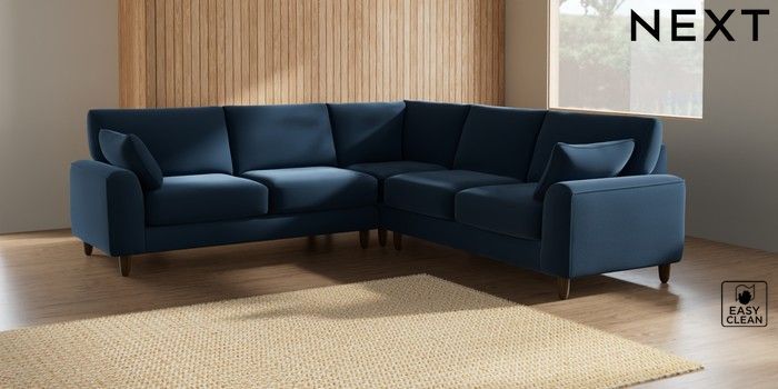 7.2.10 Campbell Medium Corner Sofa - Universal Plush Velvet Easy Clean Airforce Blue High Leg - Mid | Made Click here to use our website with more accessibility support, for example screen readers