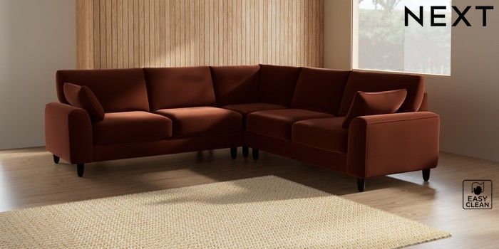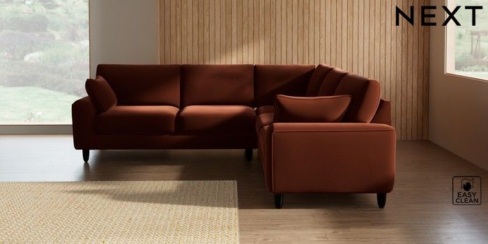 7.2.10 Campbell Medium Corner Sofa - Universal Plush Velvet Easy Clean Ginger Orange High Leg - Dark | Made Click here to use our website with more accessibility support, for example screen readers