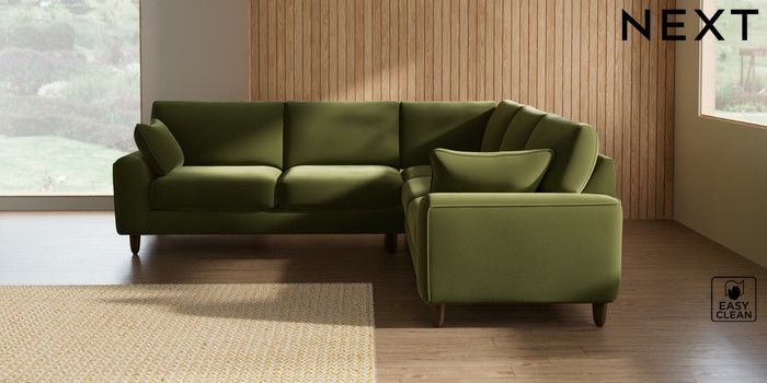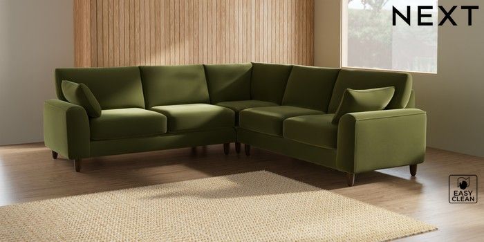 7.2.10 Campbell Medium Corner Sofa - Universal Plush Velvet Easy Clean Mid Olive Green High Leg - Mid | Made Click here to use our website with more accessibility support, for example screen readers