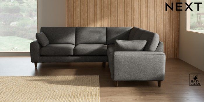 7.2.10 Campbell Medium Corner Sofa - Universal Tweedy Blend Easy Clean Dark Grey High Leg - Mid | Made Click here to use our website with more accessibility support, for example screen readers