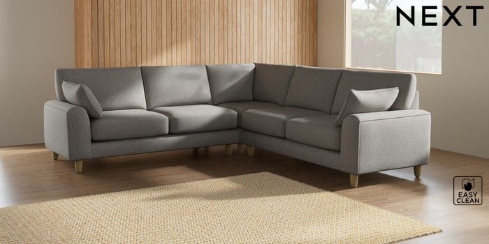 7.2.10 Campbell Medium Corner Sofa - Universal Woven Chenille Easy Clean Light Grey High Leg - Light | Made Click here to use our website with more accessibility support, for example screen readers