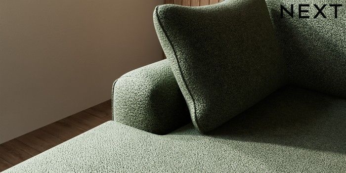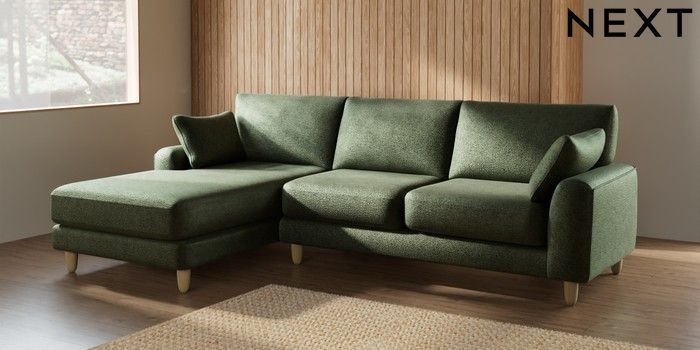 7.2.10 Campbell Medium Sofa Chaise - Left Hand Boucle Chenille Dark Moss Green High Leg - Light | Made Click here to use our website with more accessibility support, for example screen readers