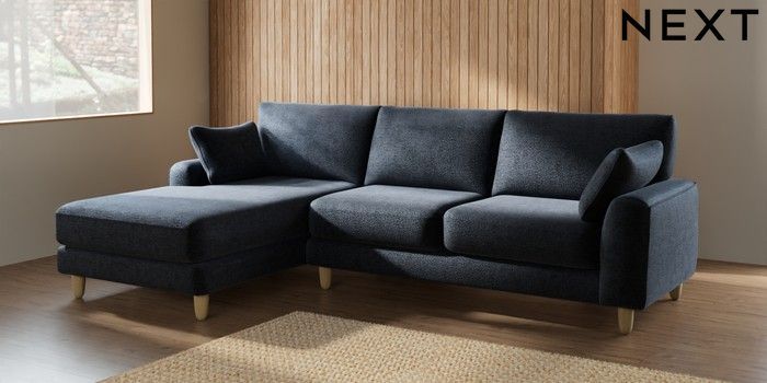 7.2.10 Campbell Medium Sofa Chaise - Left Hand Boucle Chenille Dark Slate Blue High Leg - Light | Made Click here to use our website with more accessibility support, for example screen readers