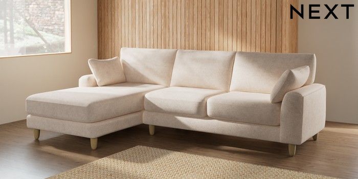 7.2.10 Campbell Medium Sofa Chaise - Left Hand Boucle Chenille Oyster High Leg - Light | Made Click here to use our website with more accessibility support, for example screen readers