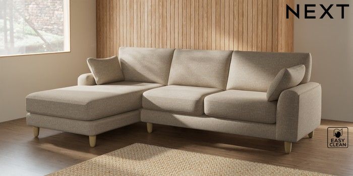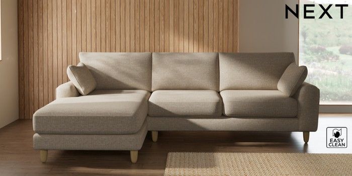 7.2.10 Campbell Medium Sofa Chaise - Left Hand Boucle Weave Easy Clean Dark Natural High Leg - Light | Made Click here to use our website with more accessibility support, for example screen readers