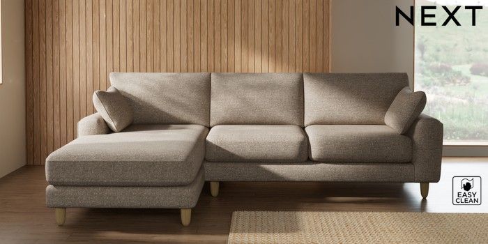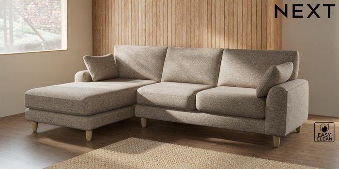 7.2.10 Campbell Medium Sofa Chaise - Left Hand Chunky Boucle Easy Clean Mid Natural High Leg - Light | Made Click here to use our website with more accessibility support, for example screen readers