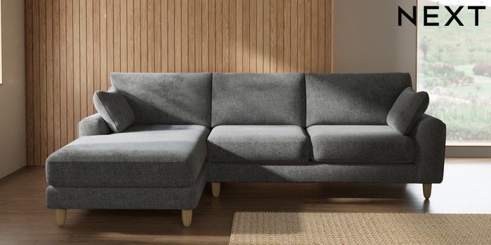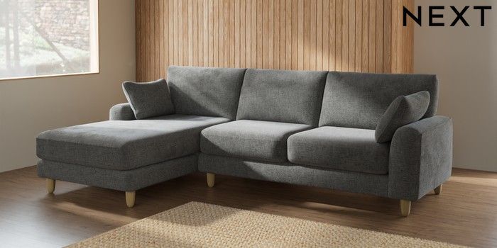 7.2.10 Campbell Medium Sofa Chaise - Left Hand Chunky Chenille Dark Grey High Leg - Light | Made Click here to use our website with more accessibility support, for example screen readers