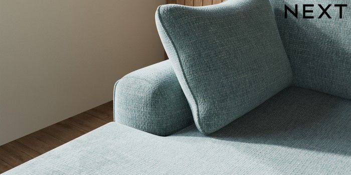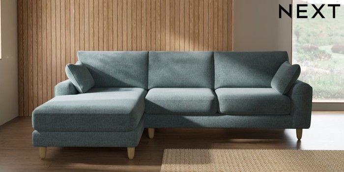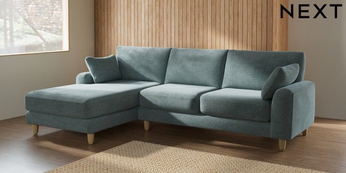 7.2.10 Campbell Medium Sofa Chaise - Left Hand Chunky Chenille Light Teal Green High Leg - Light | Made Click here to use our website with more accessibility support, for example screen readers