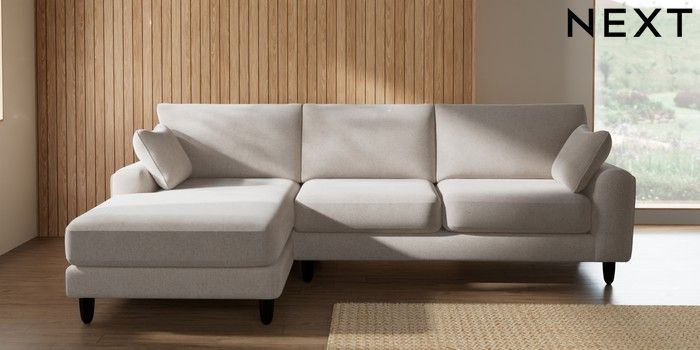7.2.10 Campbell Medium Sofa Chaise - Left Hand Chunky Chenille Oyster High Leg - Dark | Made Click here to use our website with more accessibility support, for example screen readers