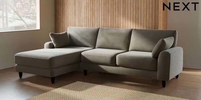 7.2.10 Campbell Medium Sofa Chaise - Left Hand Chunky Marl Light Olive Green High Leg - Dark | Made Click here to use our website with more accessibility support, for example screen readers
