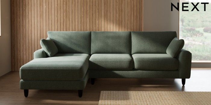 7.2.10 Campbell Medium Sofa Chaise - Left Hand Chunky Texture Mid Forest Green High Leg - Dark | Made Click here to use our website with more accessibility support, for example screen readers
