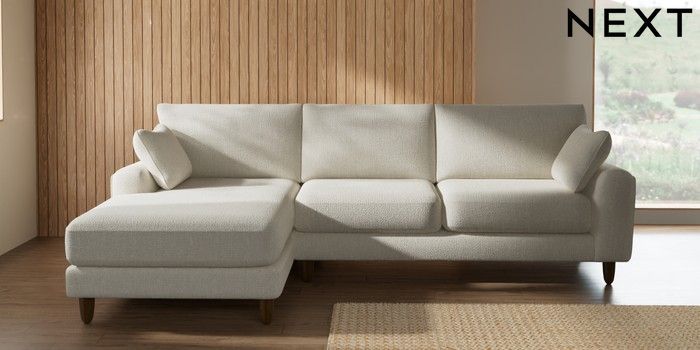 7.2.10 Campbell Medium Sofa Chaise - Left Hand Chunky Texture Oyster High Leg - Mid | Made Click here to use our website with more accessibility support, for example screen readers