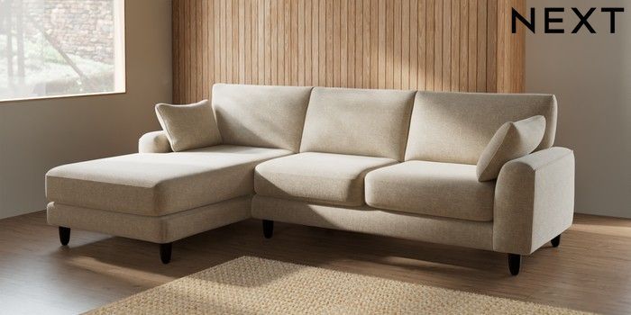 7.2.10 Campbell Medium Sofa Chaise - Left Hand Chunky Weave Cream High Leg - Dark | Made Click here to use our website with more accessibility support, for example screen readers