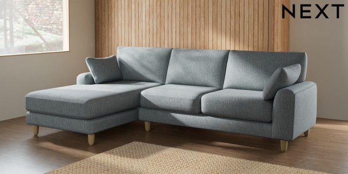 7.2.10 Campbell Medium Sofa Chaise - Left Hand Chunky Weave Mid Blue High Leg - Light | Made Click here to use our website with more accessibility support, for example screen readers