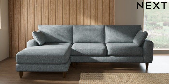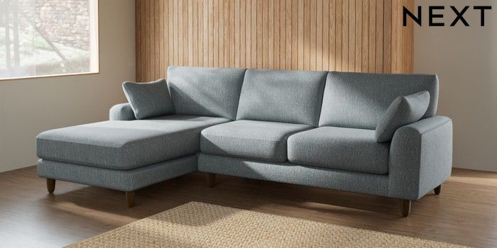 7.2.10 Campbell Medium Sofa Chaise - Left Hand Chunky Weave Mid Blue High Leg - Mid | Made Click here to use our website with more accessibility support, for example screen readers