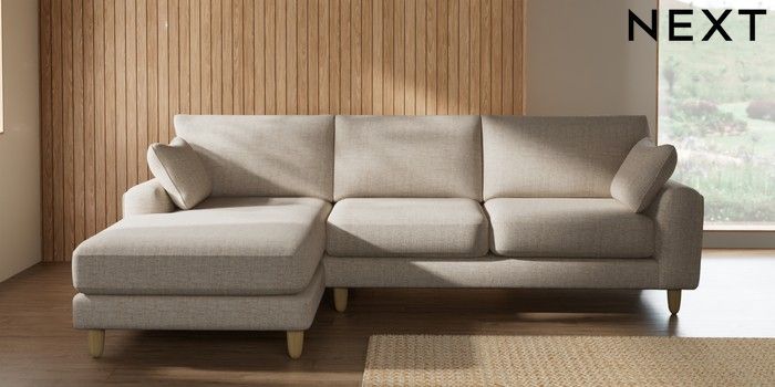 7.2.10 Campbell Medium Sofa Chaise - Left Hand Chunky Weave Mid Natural High Leg - Light | Made Click here to use our website with more accessibility support, for example screen readers